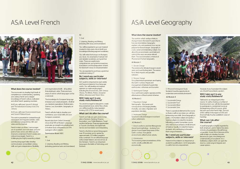 Hereford Sixth Form College赫里福德第六大学2014年招股书板式设计2014年07月11日