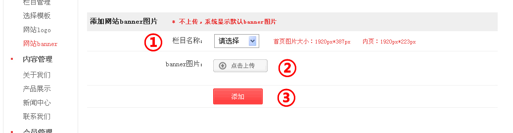 4.“网站banner” 你可以从本地上传banner图片,不上传,系统显示默认banner。