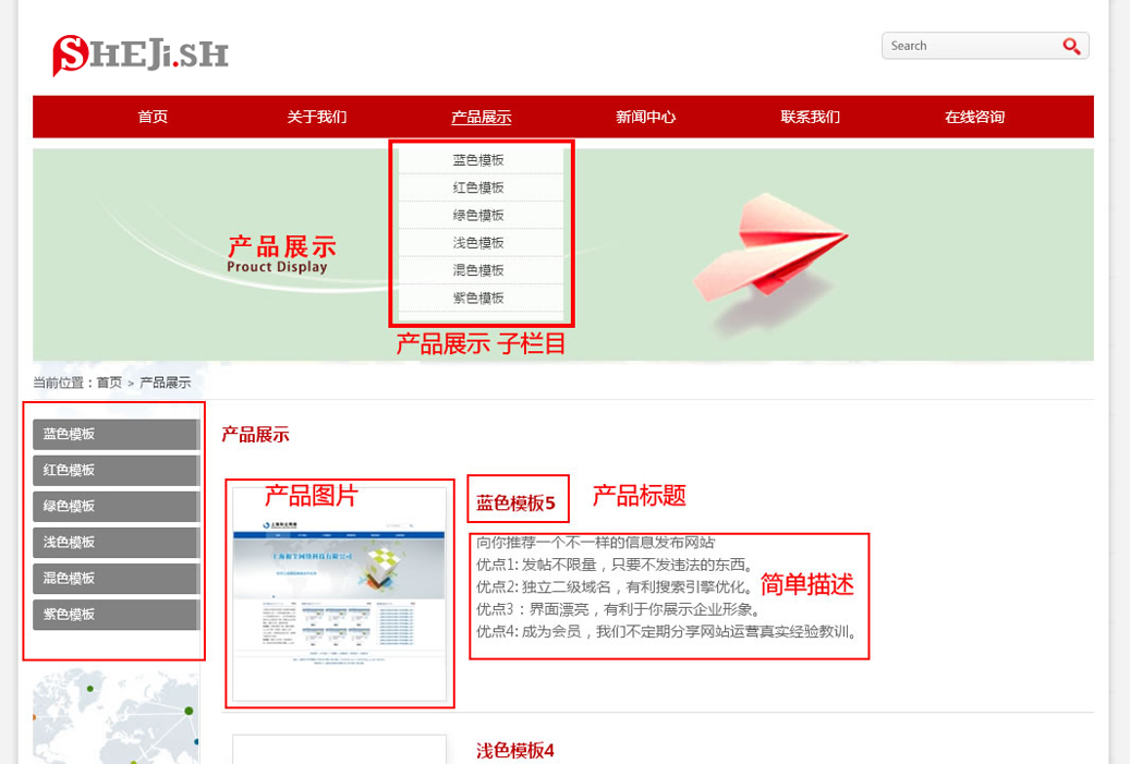 6.“产品展示”需要上传图片,图片默认大小200px*200px或者根据开发需求而定,系统会等比例缩放你上传的图片。