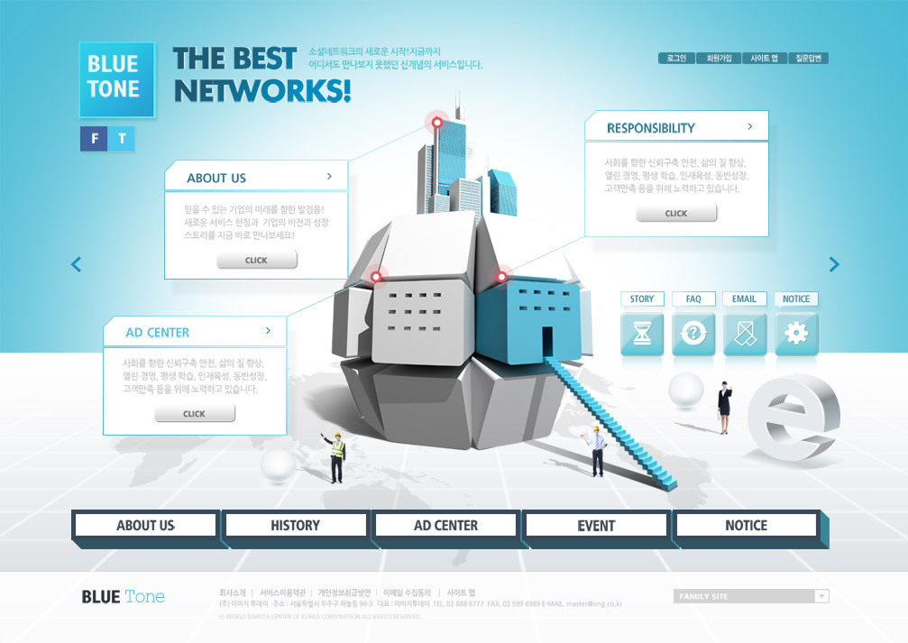 建筑工程行业企业形象宣传网站设计-天蓝色立体视觉形象设计