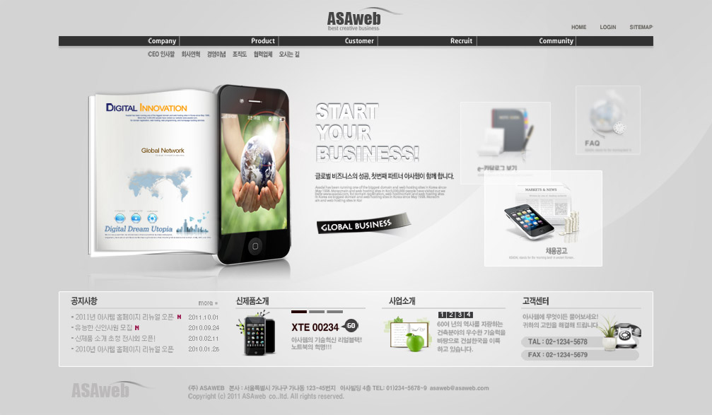 银色时尚大屏幕韩国风格智能手机通讯行业产品企业网站页面设计