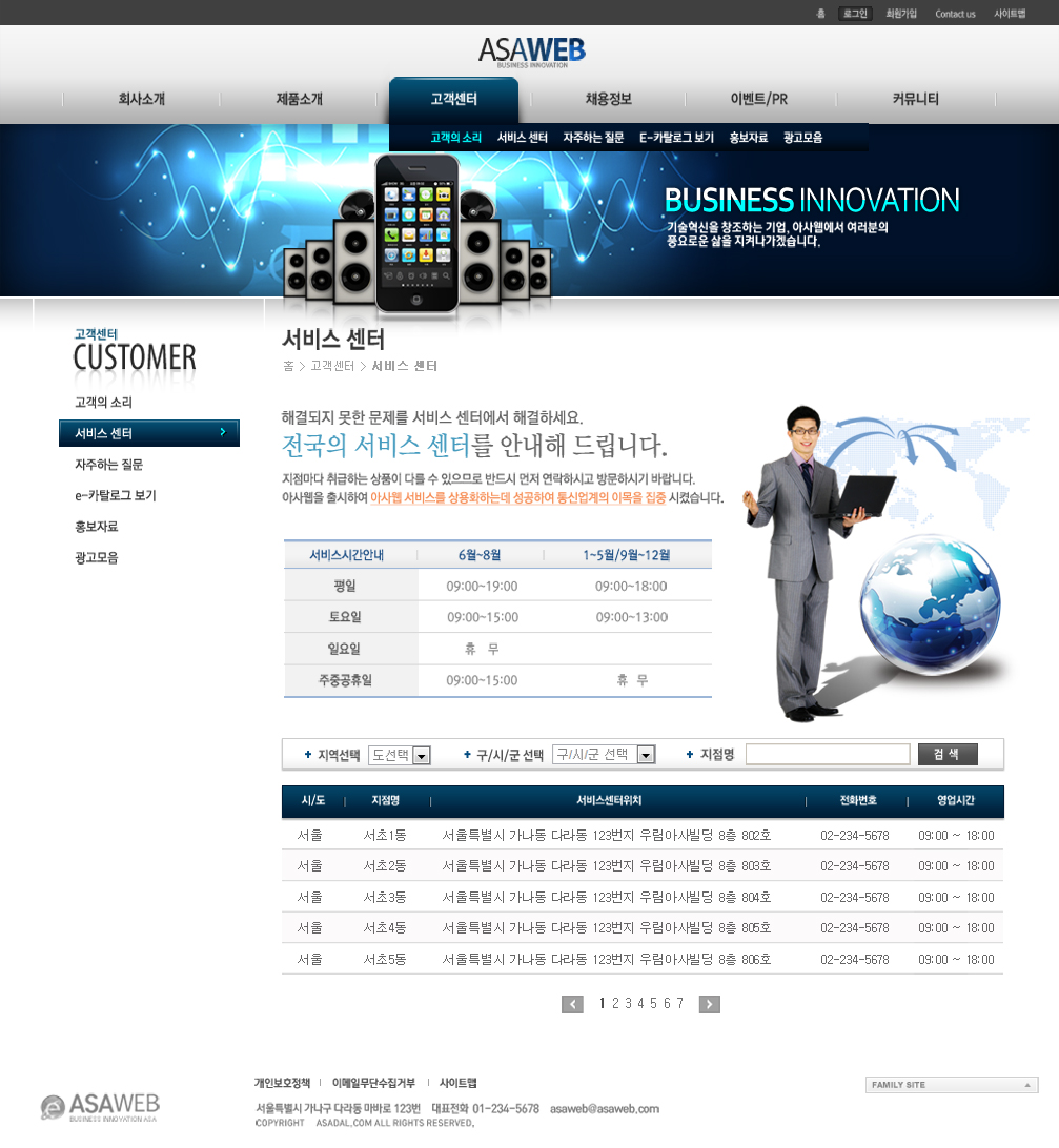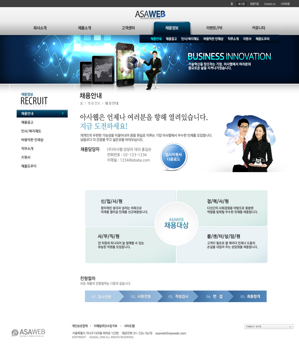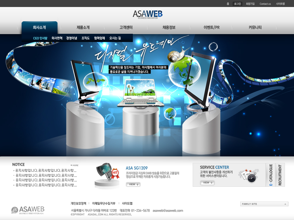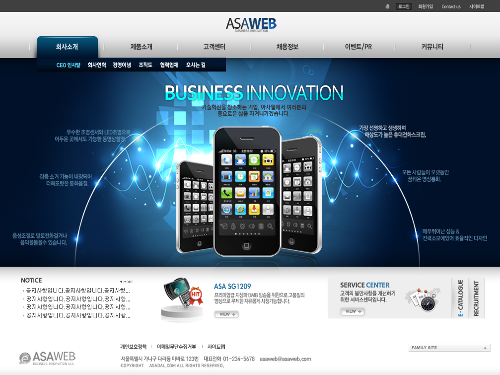 蓝色通讯企业类手机公司韩国风格产品展示网站界面设计