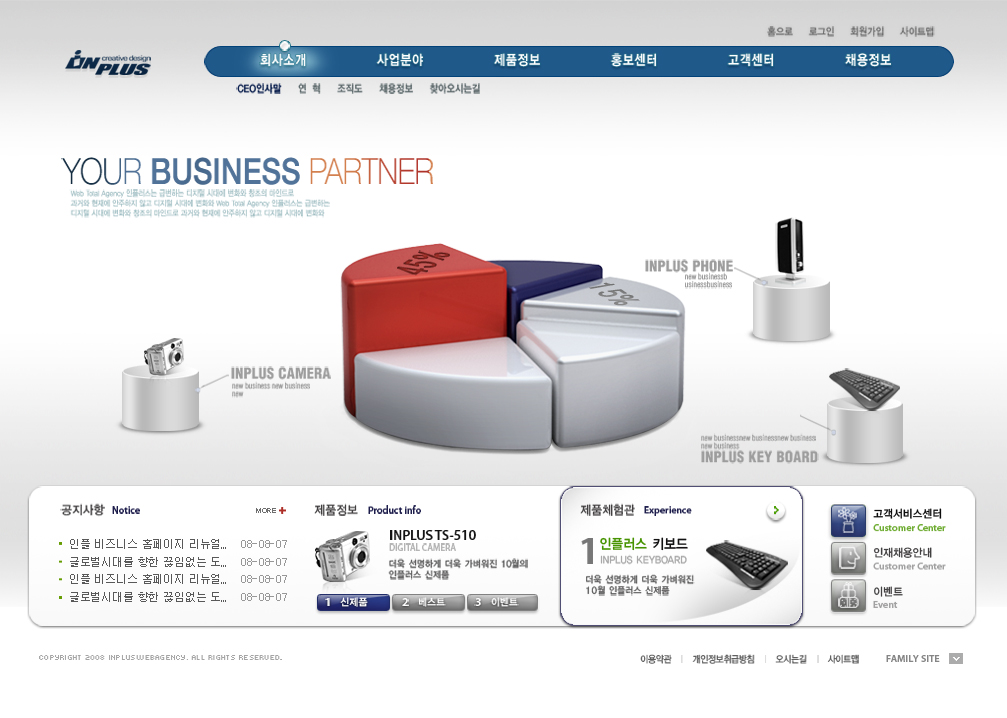 一款容易表达清晰的蓝色创意饼状韩国风格财务数据企业网站设计