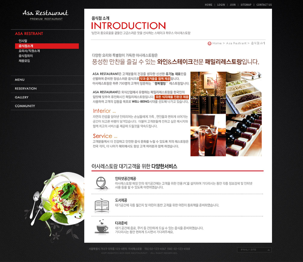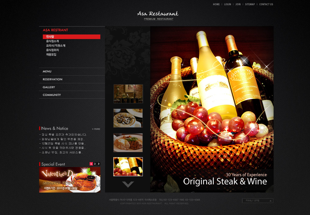 黑色韩国风格红酒水果时尚饮食食品餐厅企业PSD文件网页设计