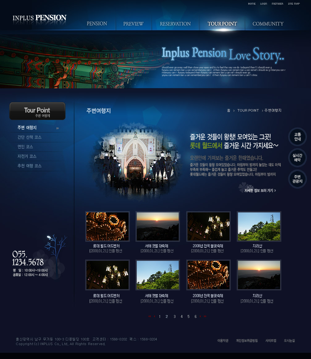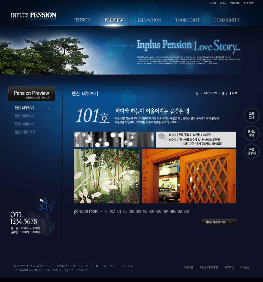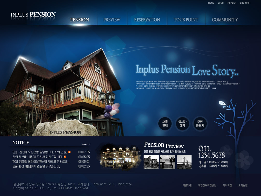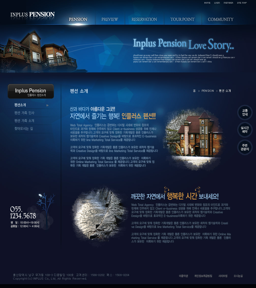 蓝色韩国风格别墅楼盘销售型企业网站设计-带灯光夜景的网页设计
