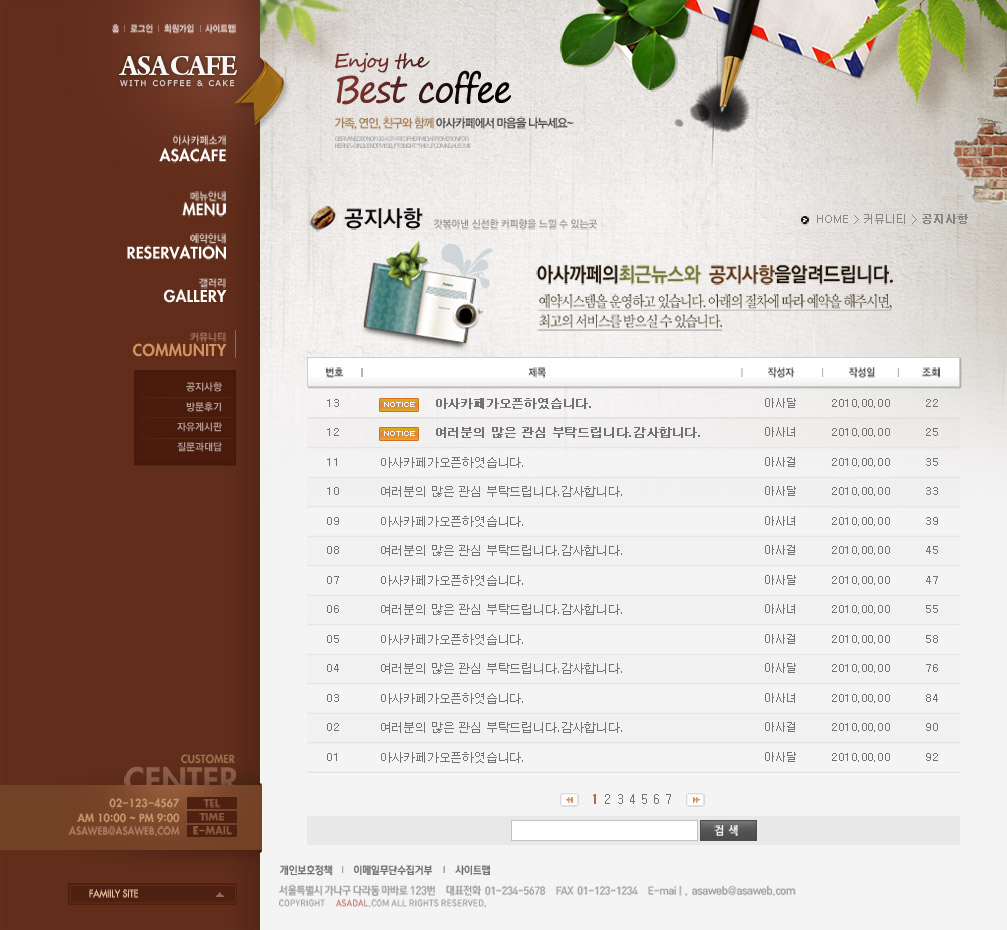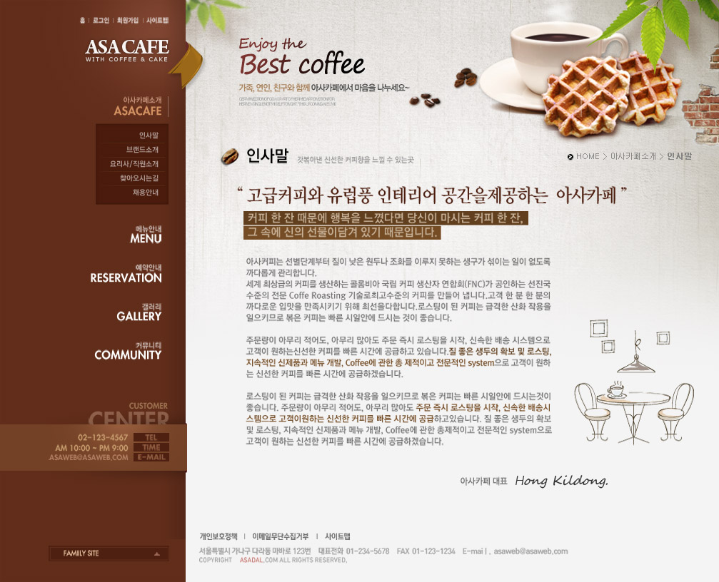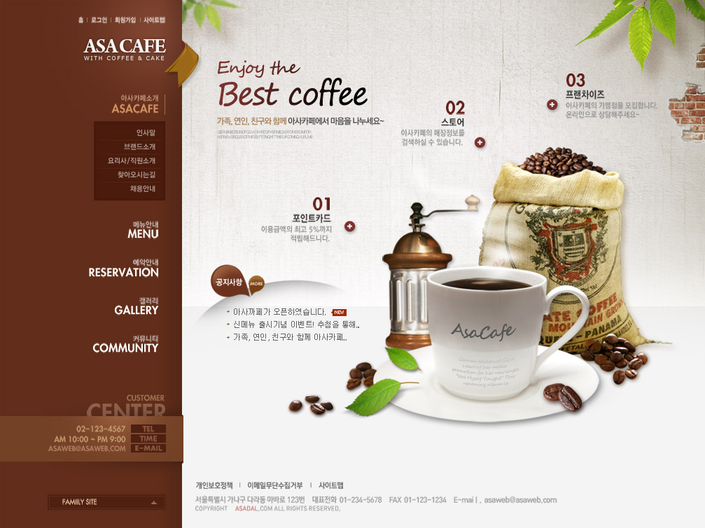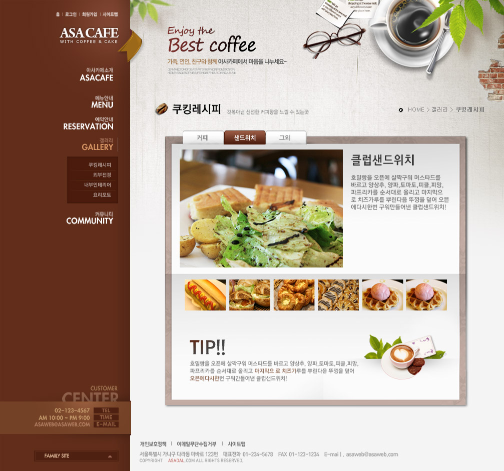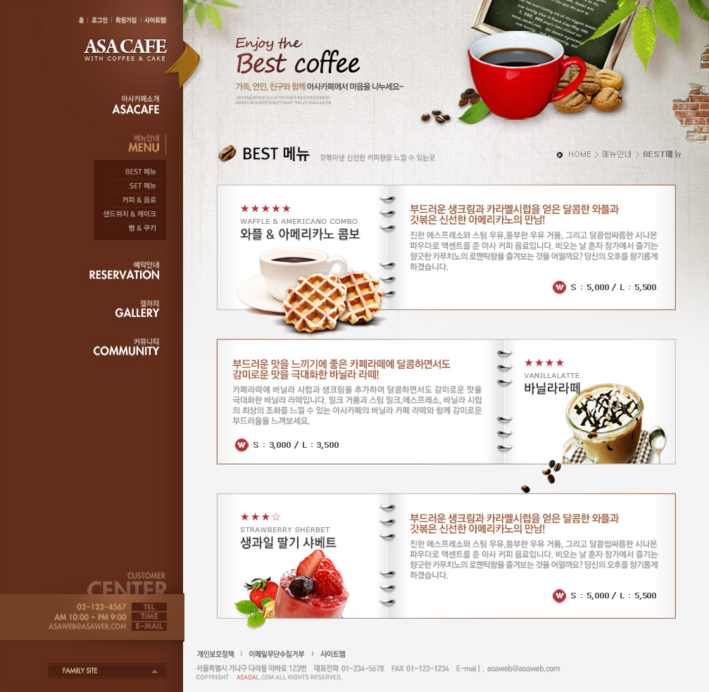 清新简洁大气的经典咖啡色韩式美食咖啡西餐料理饮食食品网站设计