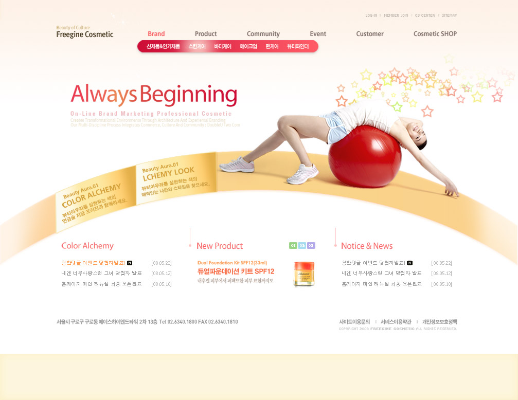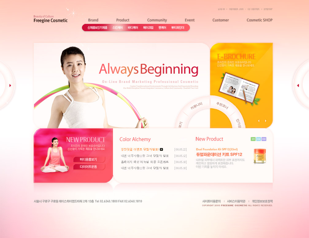 粉红色韩式瑜伽跳绳拳击游泳运动健美网页设计和美容化妆产品网站界面设计