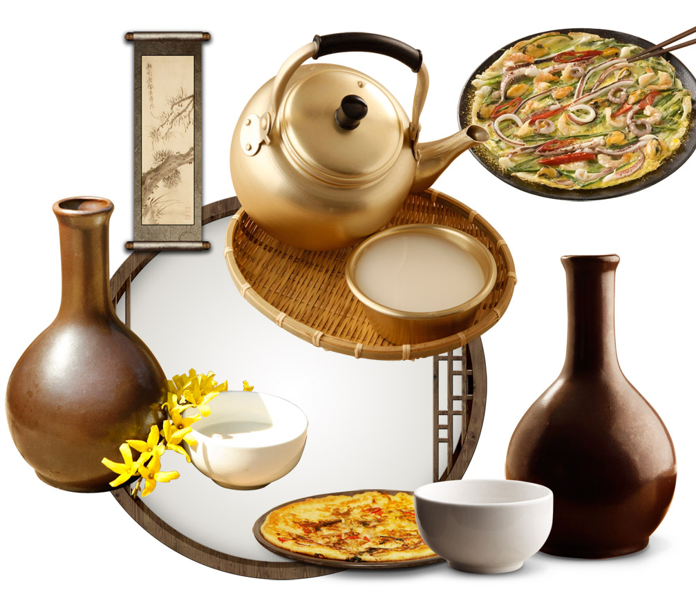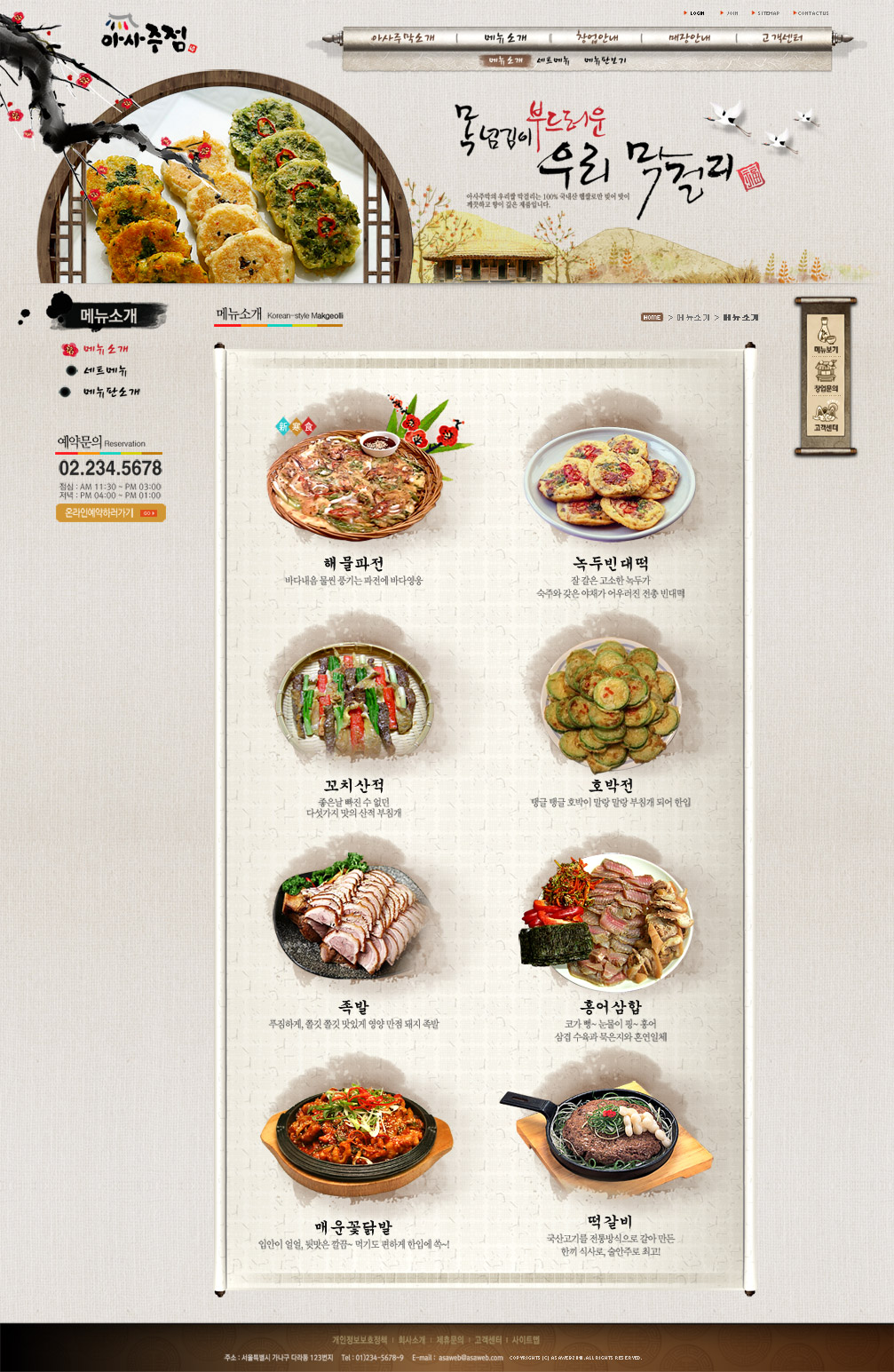个性的水墨花手绘插图韩国风格饼类披萨食品电子商务网站PSD网页设计
