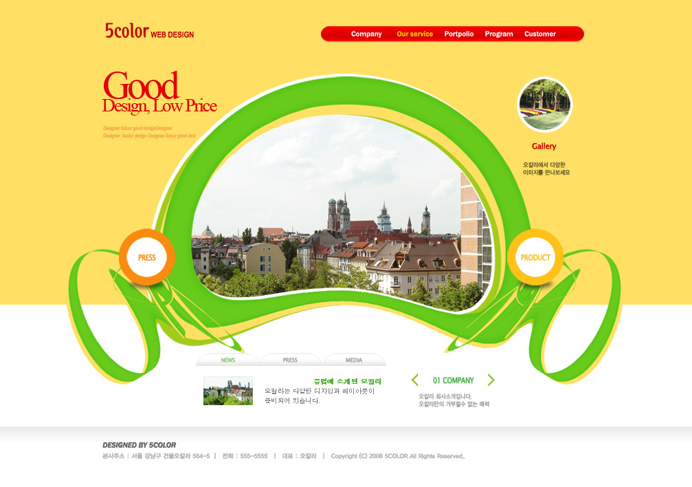 黄色“太阳眼镜片”窗口网页设计-韩国风格时尚创意房地产企业网站设计