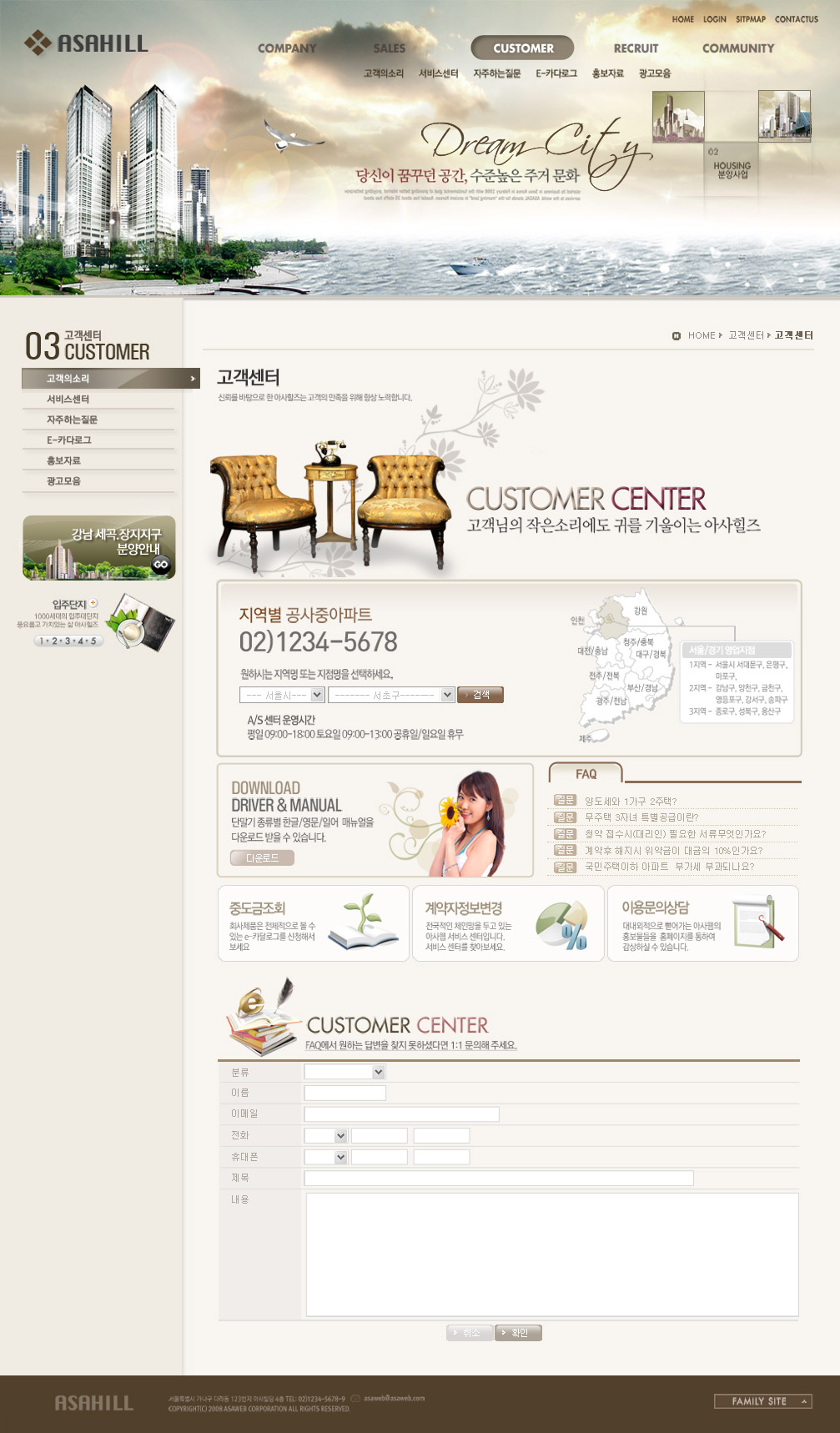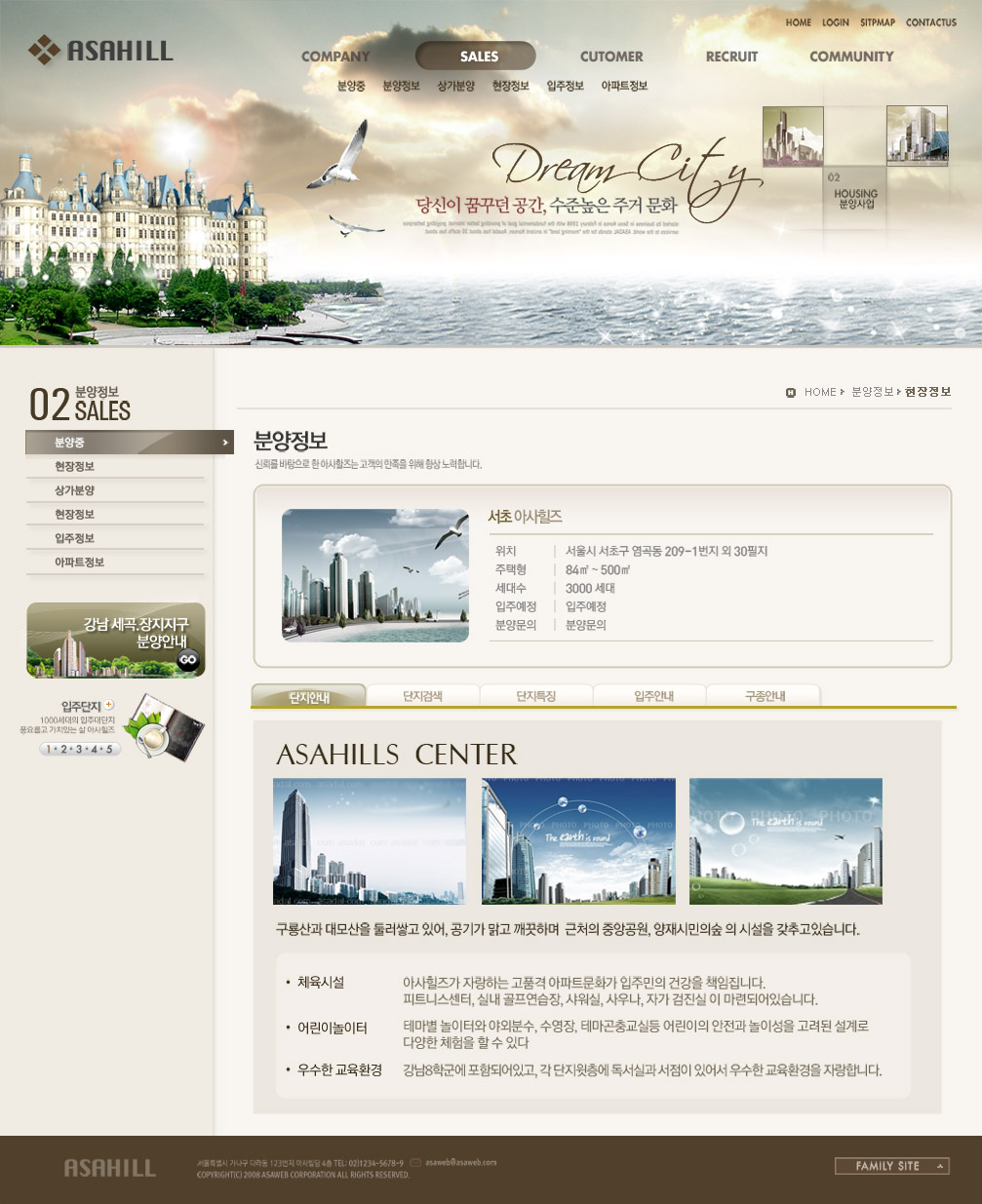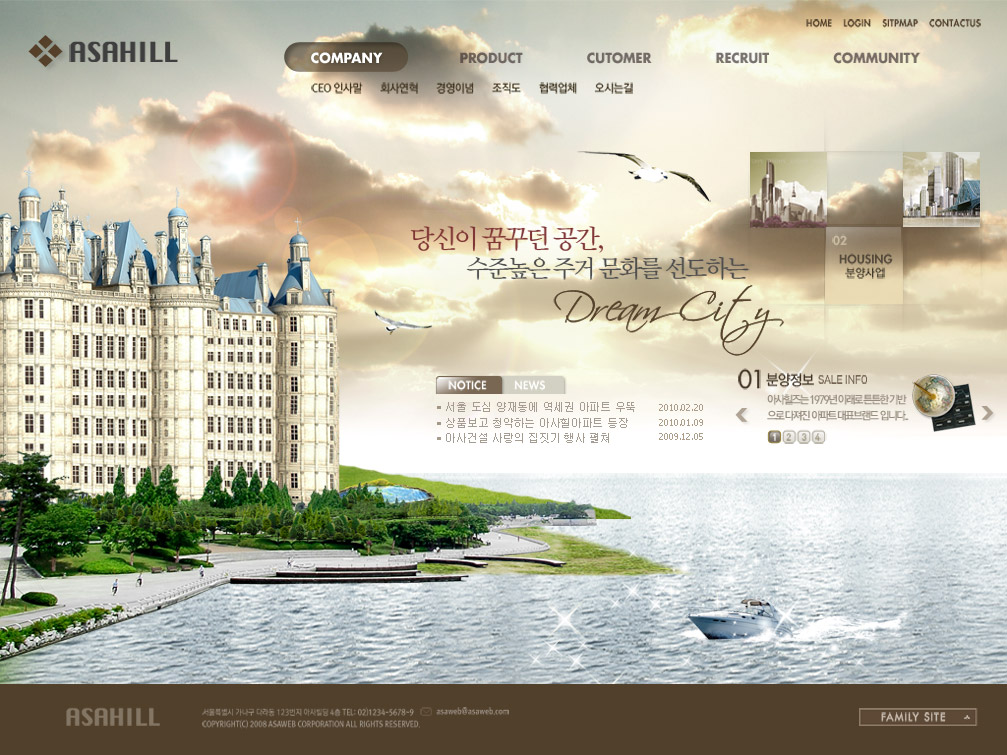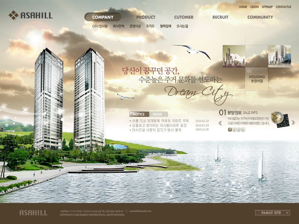 梦想之都-咖啡色浪漫的在水一方韩国房地产楼盘展示网站PSD文件网页设计
