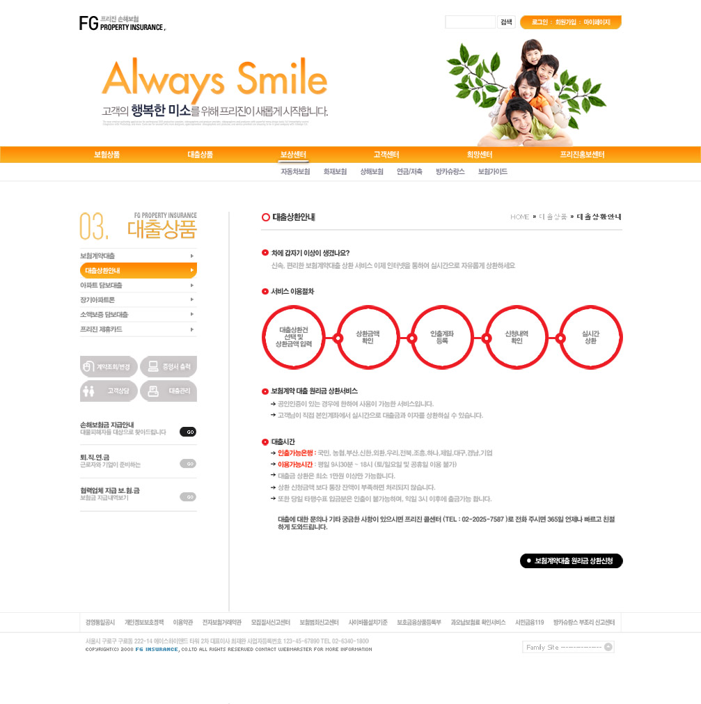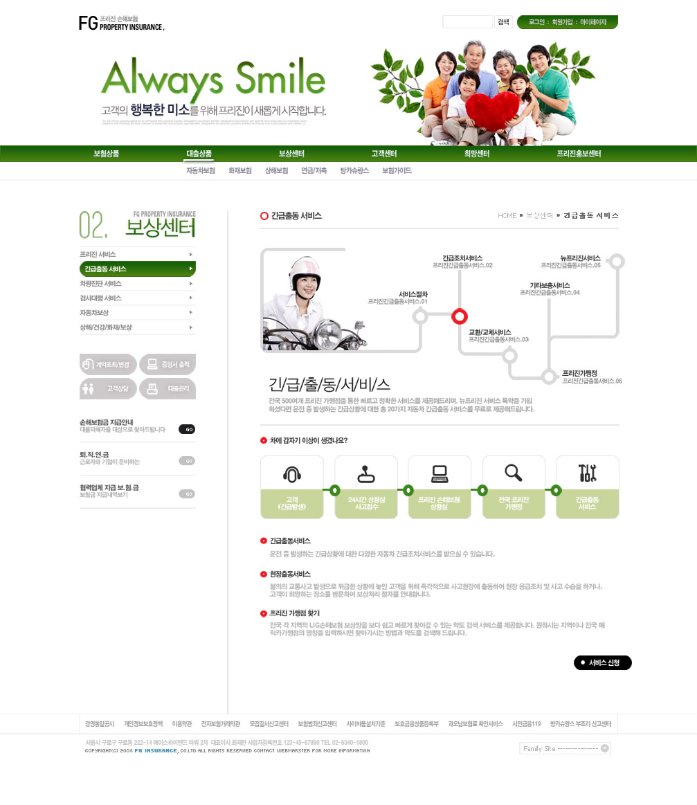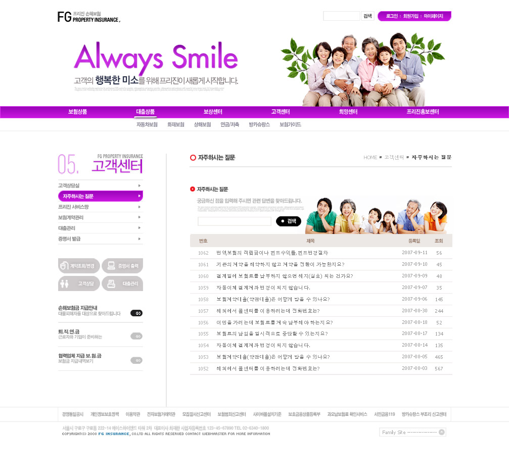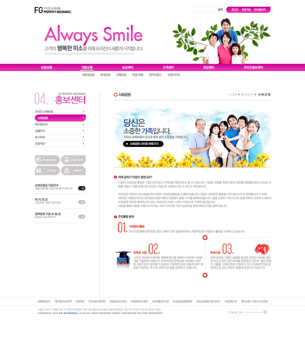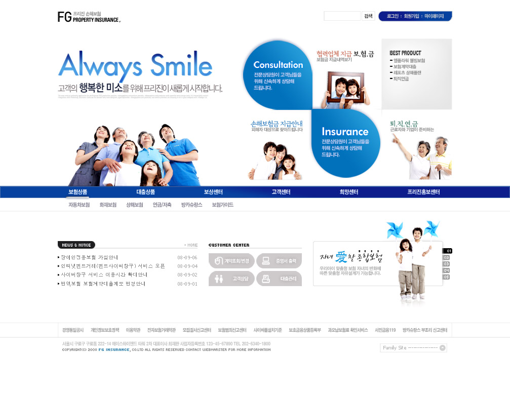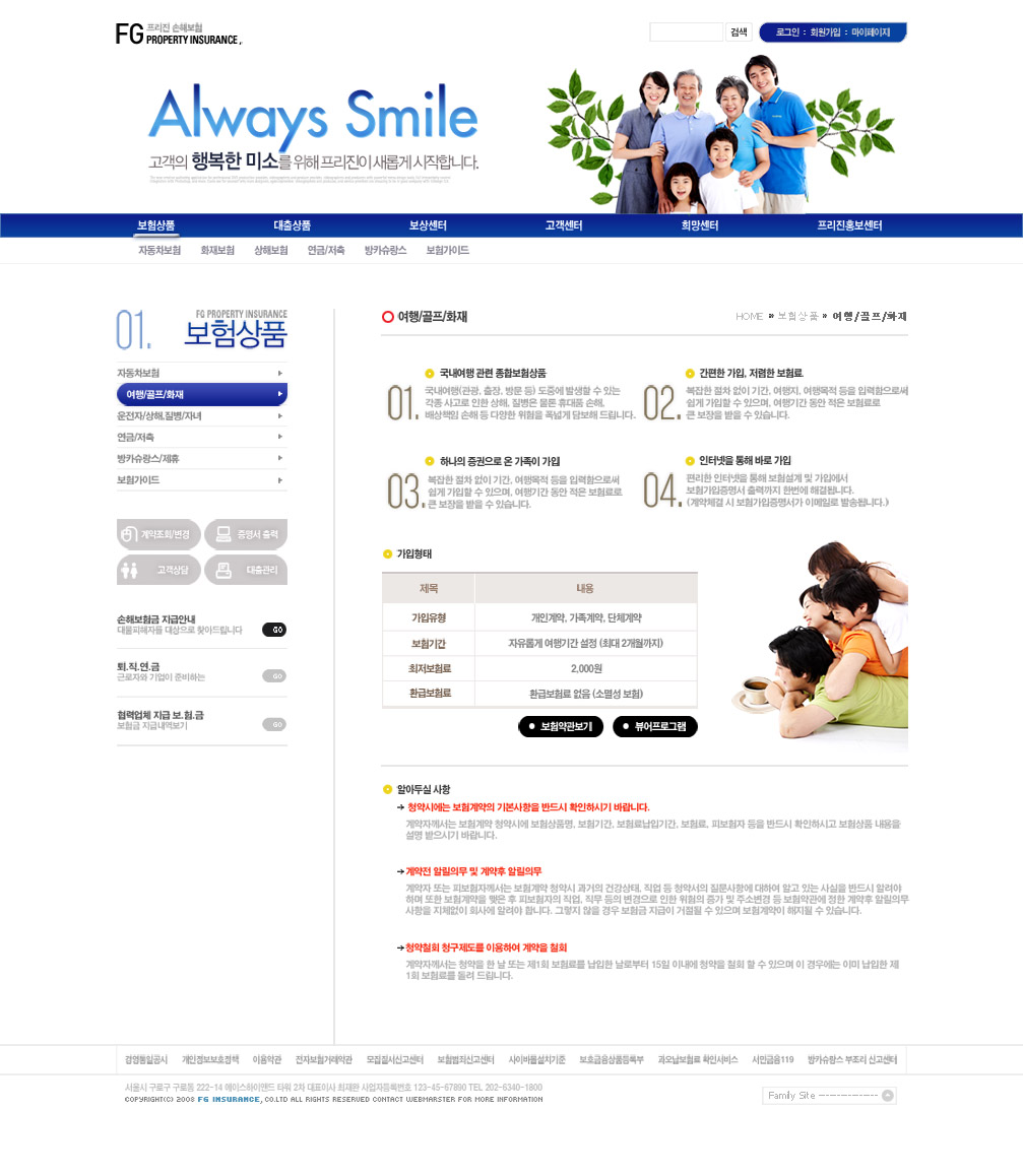 蓝色韩国风格和睦家庭网站设计-人寿保险金融财经类企业网页设计
