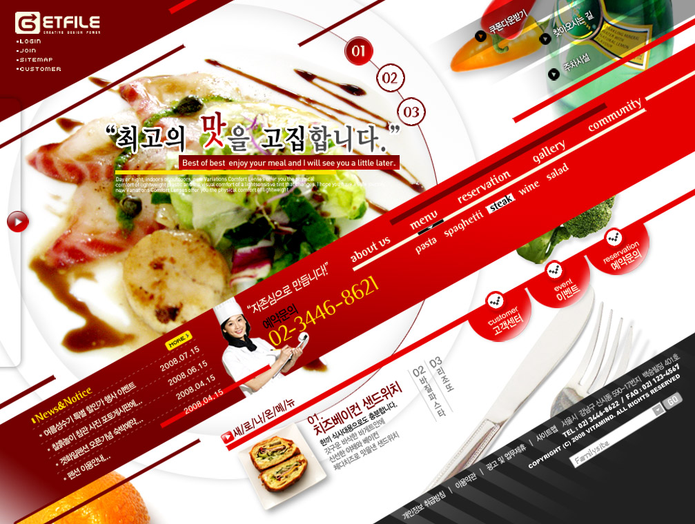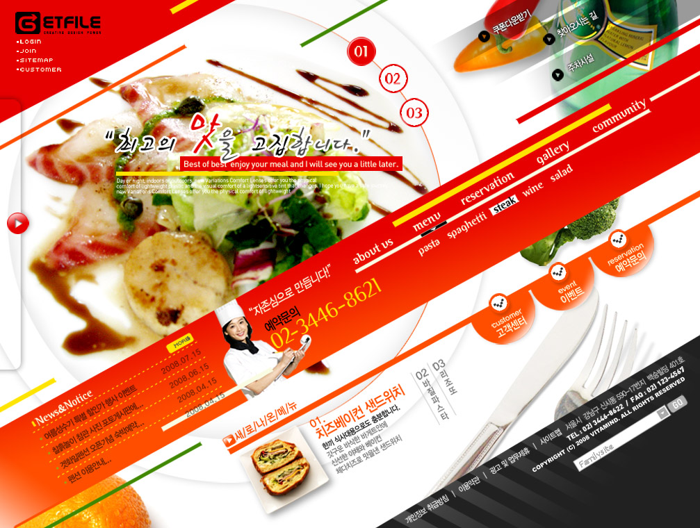 个性靓丽的红色倾斜多边形窗口韩国风格烧烤美食料理餐饮企业网站PSD网页设计