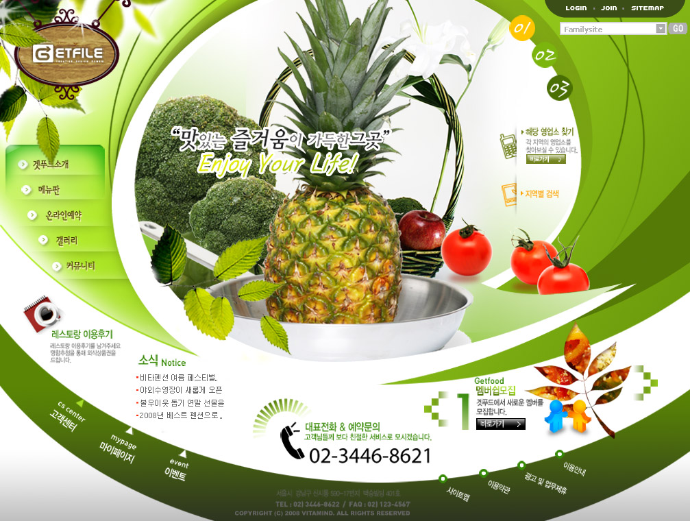 黄色韩国拉面水果沙拉料理餐饮美食展示网页设计