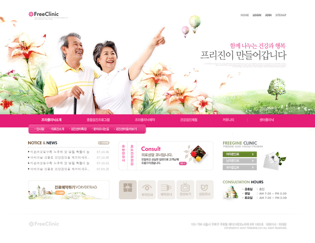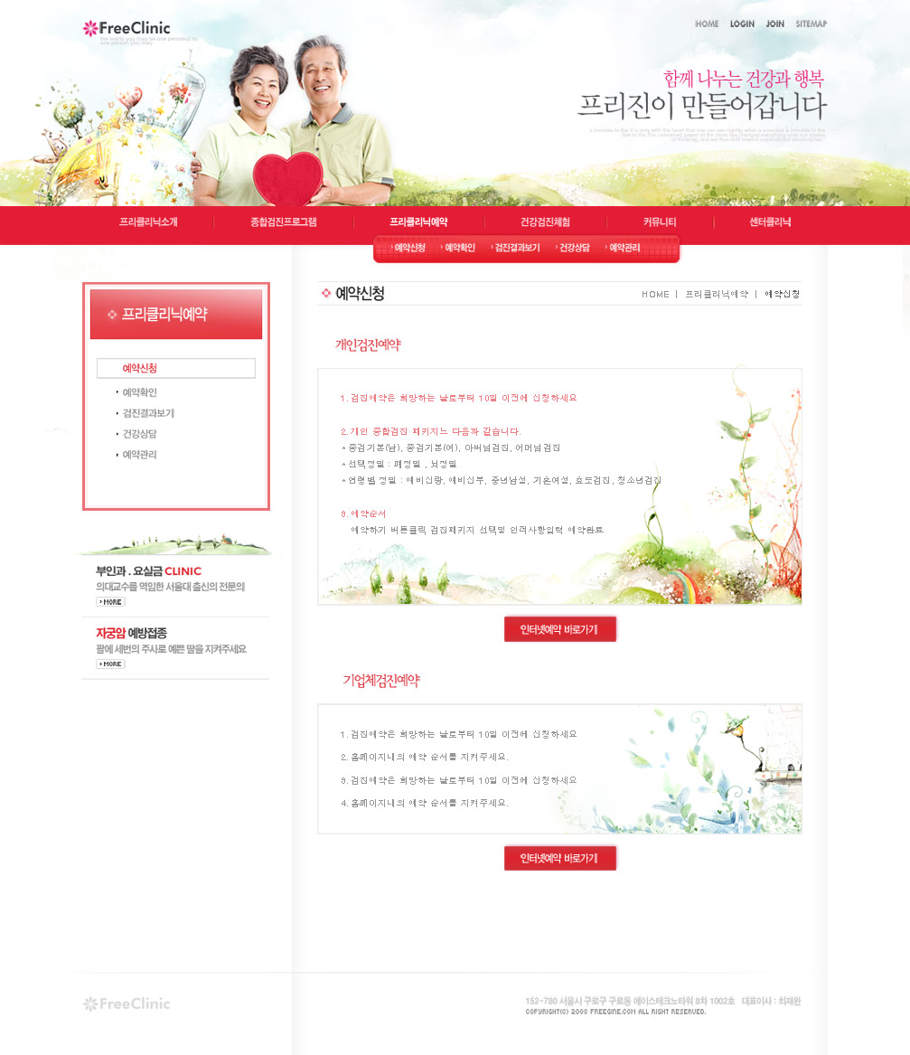 红色韩国医疗保健医院类网站设计-关注中老年人健康