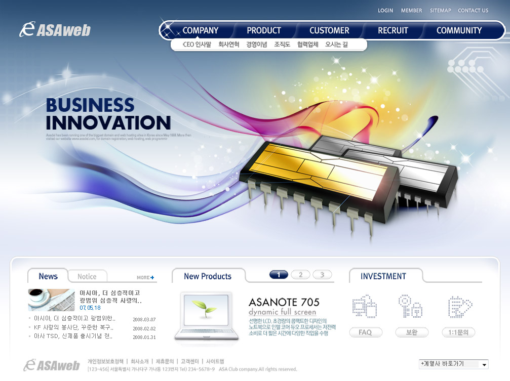 蓝色韩国风格科技动感彩带界面风-电脑数码、半导体及电子元器件企业及产品展示网站设计