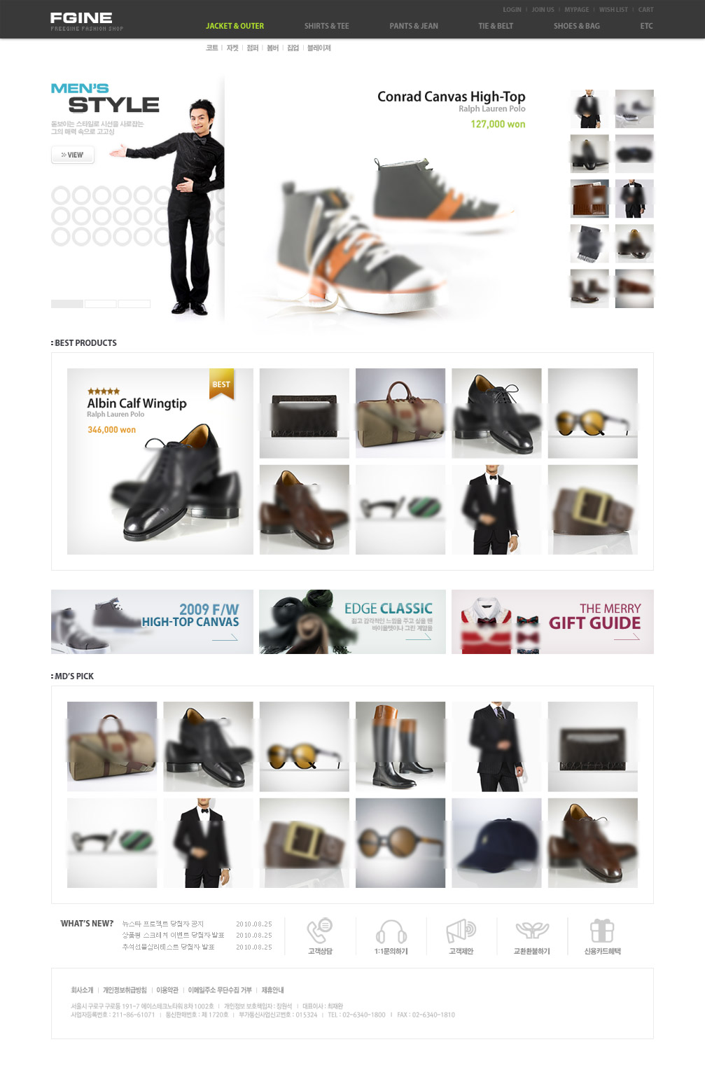 时尚大气经典黑色韩国风格男性服装鞋子箱包配饰购物网网站设计