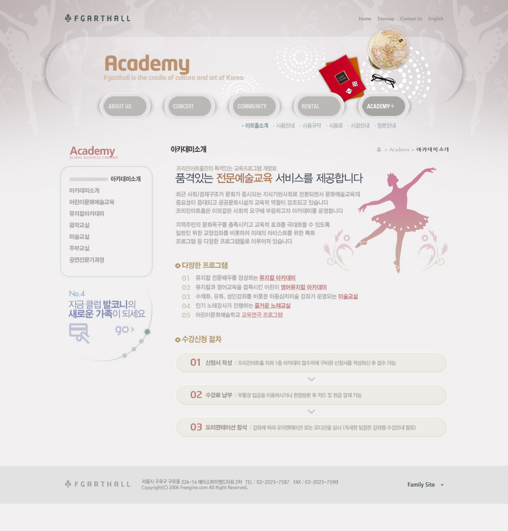 浓浓文艺气息灰色系韩国风格文艺舞蹈艺术网站PSD模板设计
