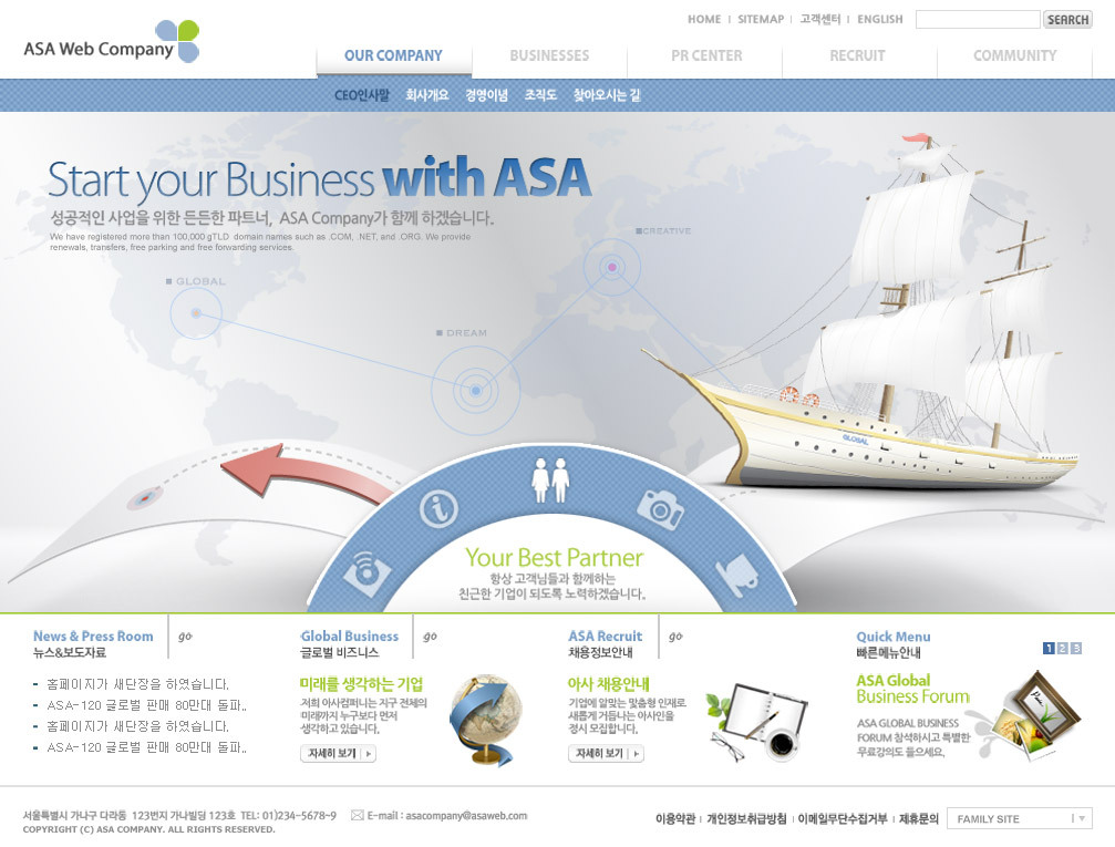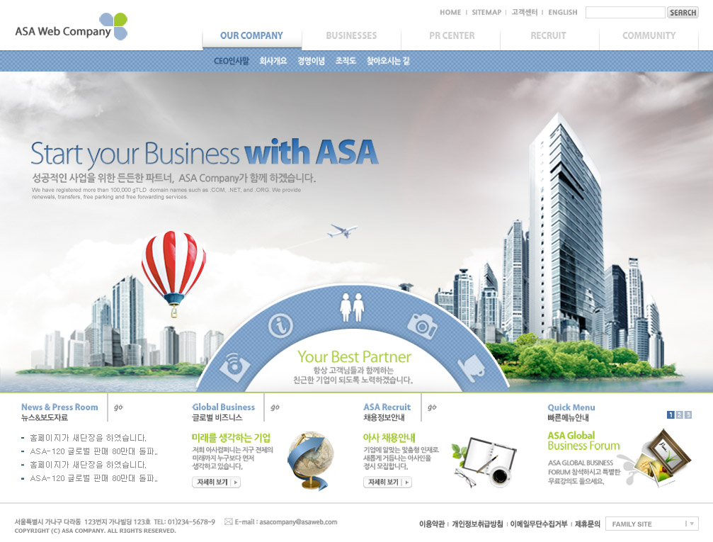 象征天空与海洋的纯净稳重蓝色系韩国风房地产项目-道路桥梁工程建筑集团网站设计