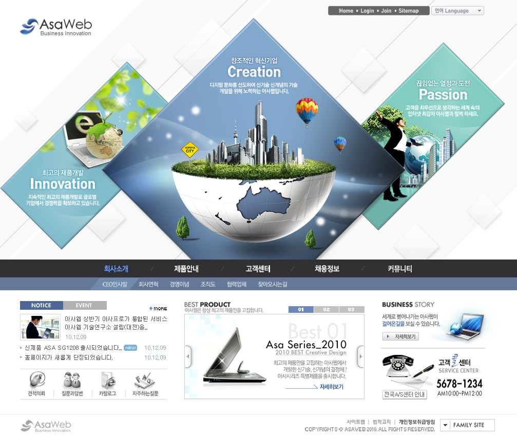 方形巧妙组合!深沉海水蓝色系韩国风IT科技设备及产品展示网页设计