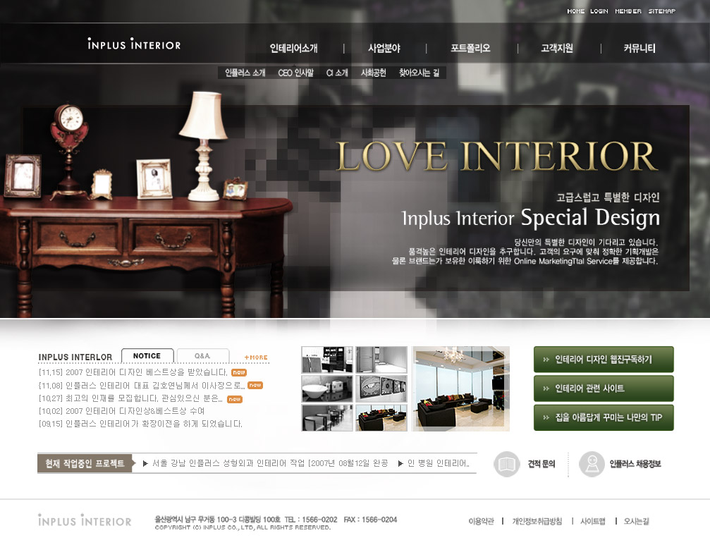 奢华复古黑色调韩国风界面-家装室内设计建造公司网站设计PSD模板