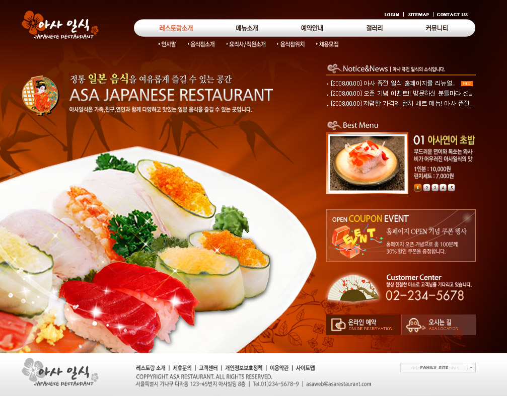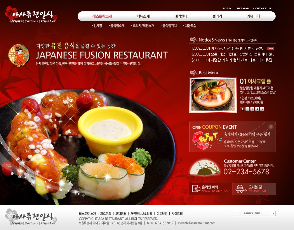 亮丽火红色系诱人美食界面-韩国风格美食料理餐饮行业网站设计
