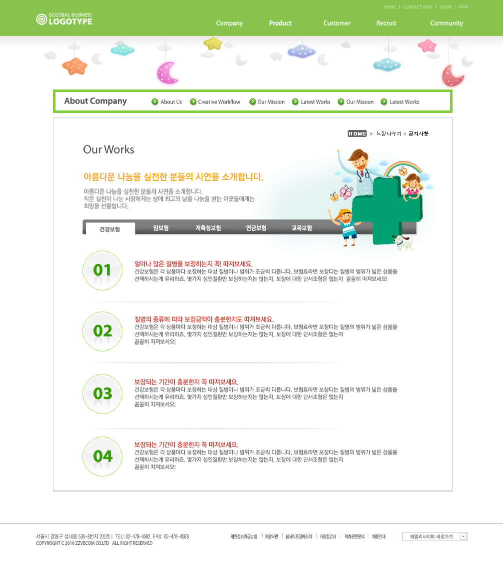 关注儿童健康!清新抹茶绿韩国风格儿童宝宝公益医疗网站模板设计