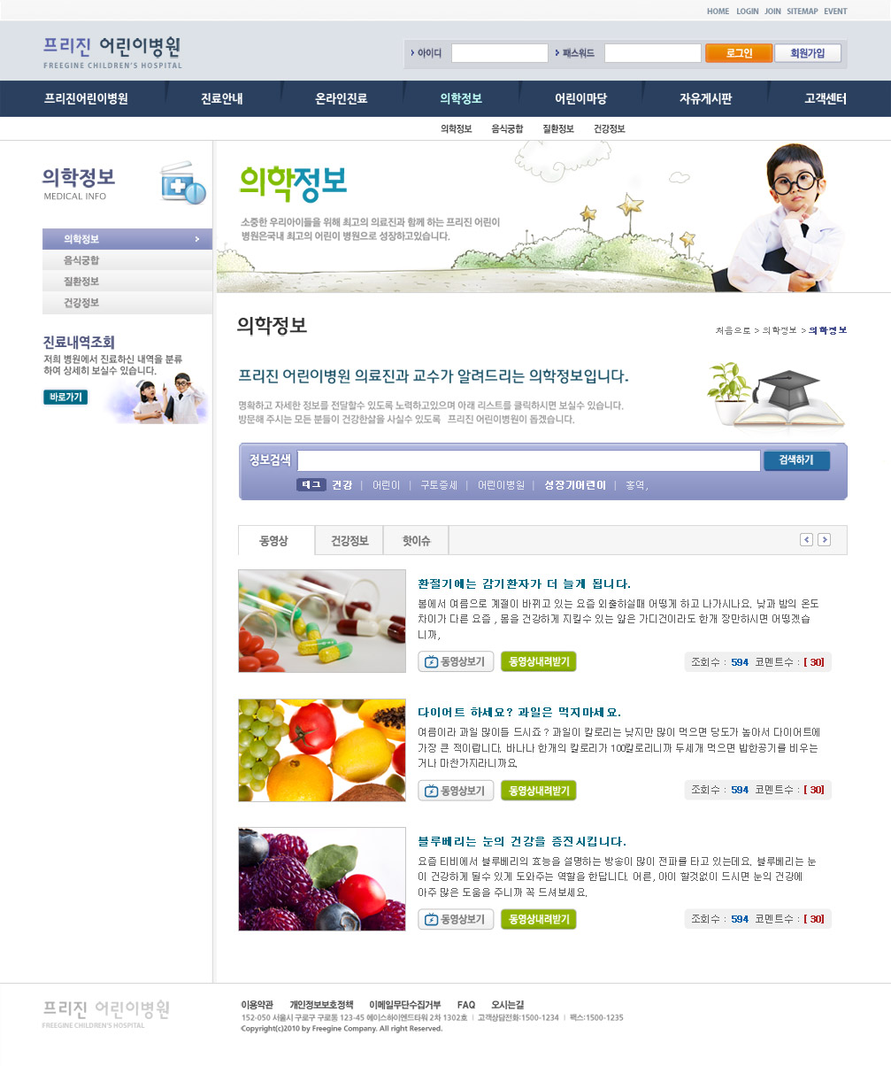 深蓝系漫画背景韩国风格儿童医院护理网站设计-漂亮萌萌哒滴小天使
