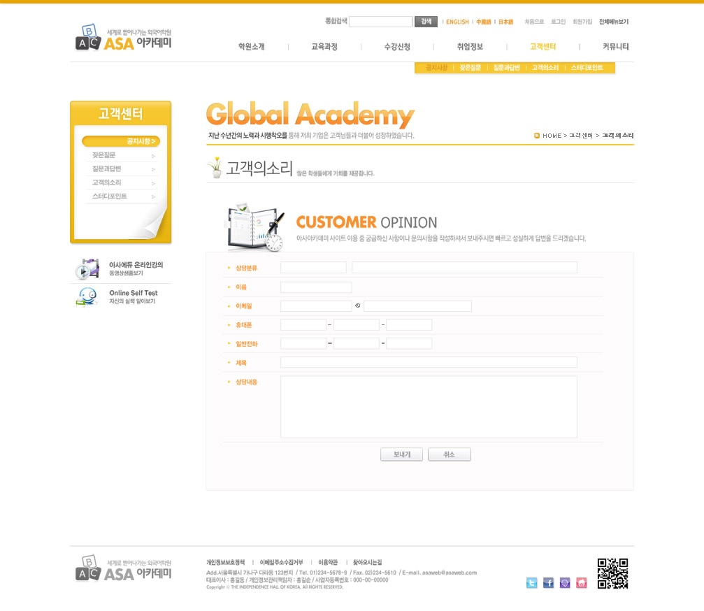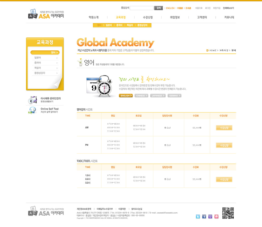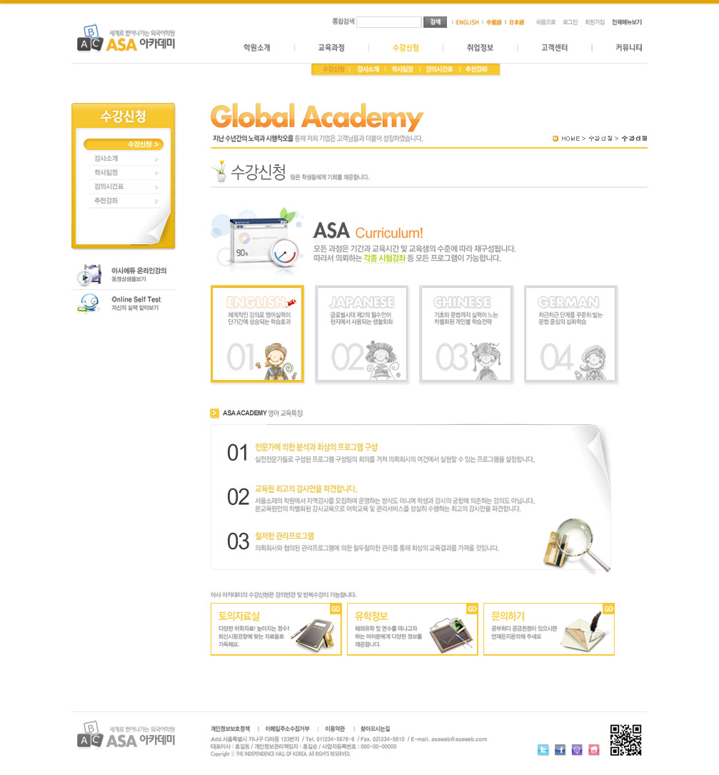 靓丽温情黄色调韩国风大学教育培训机构网站PSD模板设计