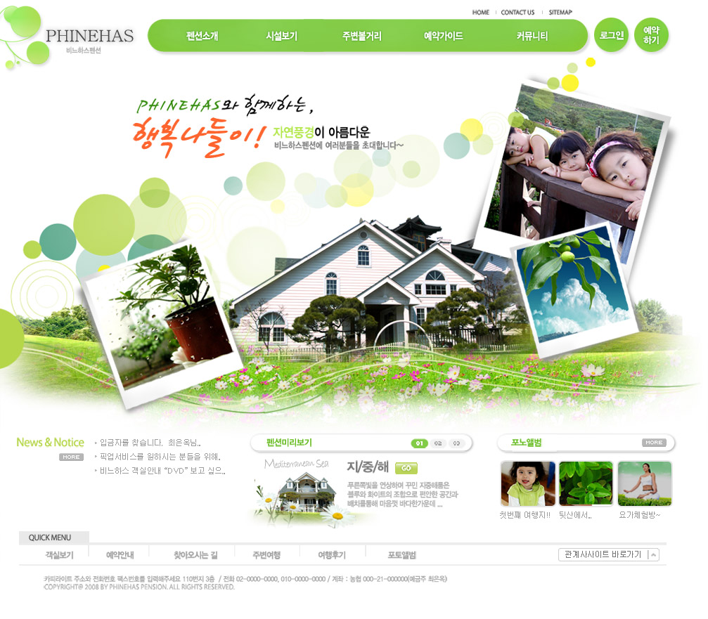 魅力大自然气息!绿色系韩国风欧式别墅建筑楼盘展示网页设计模板