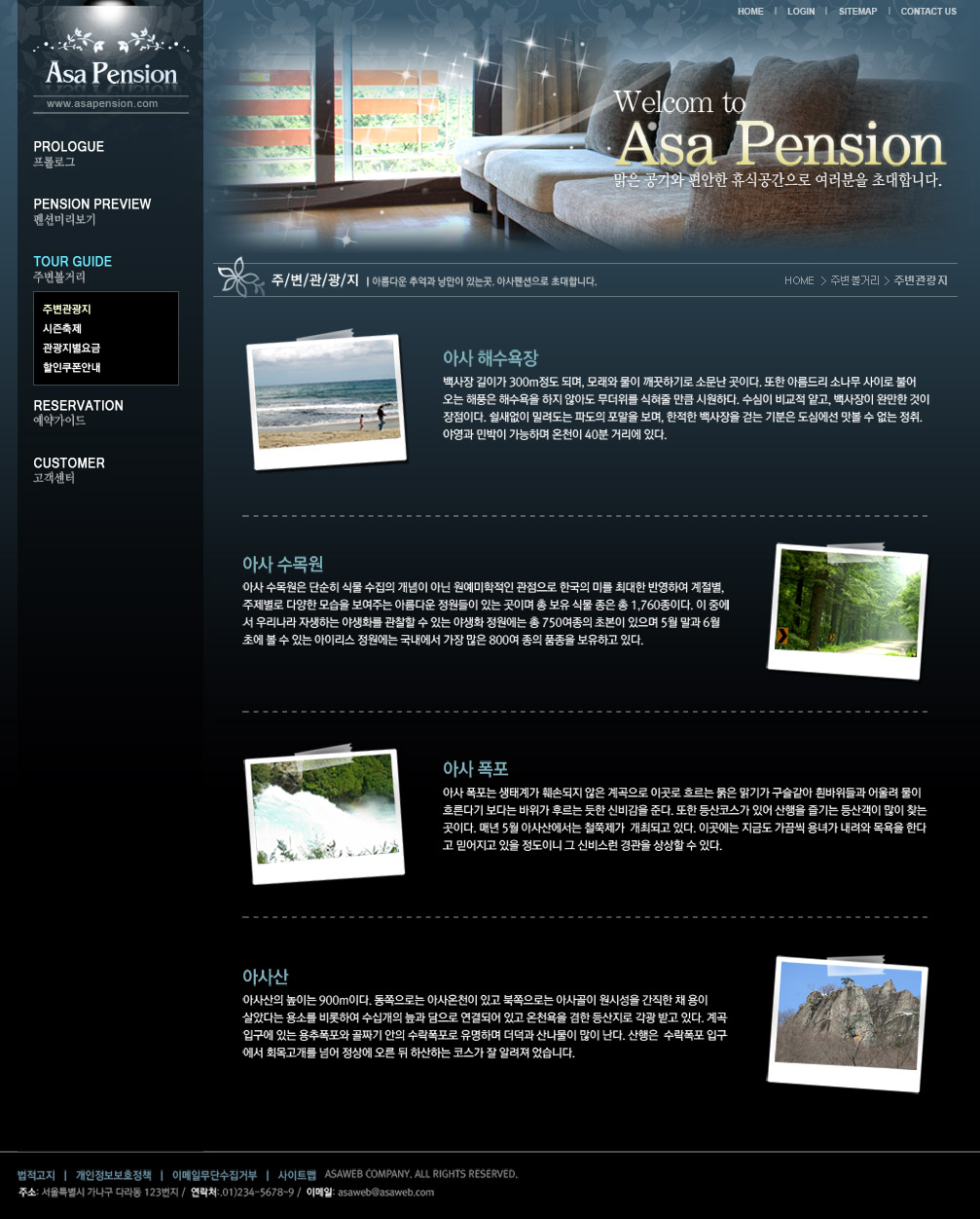 经典霸气炫酷黑色系界面设计-韩国风户外旅游度假山庄酒店宾馆网站设计