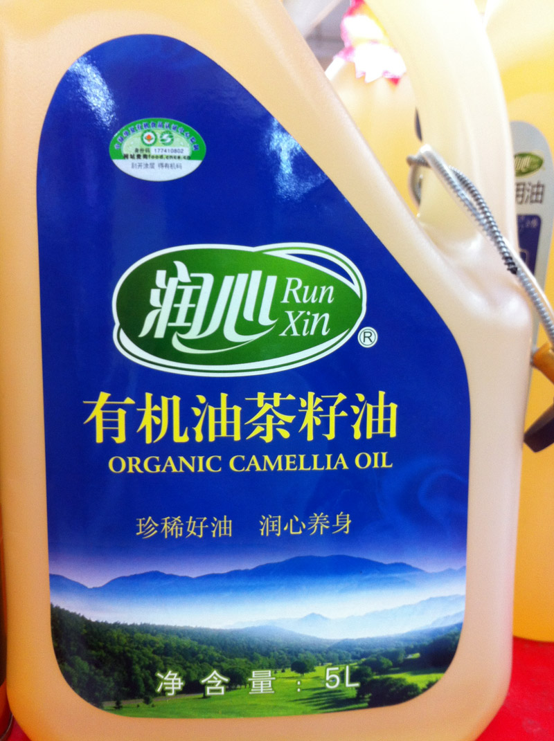 润心有机茶油籽油塑料壶装外包装设计,整体的蓝色创造出强烈的视觉冲击力。防伪标签置于显眼的位置,使消费者容易对产生信赖感、更放心地去购买。企业标志的设计,由两片茶籽叶-使人身心舒畅的绿叶有机构造而成,很清新。设计师为了表现润心的主题,以茶树生长的天然的地理环境为设计背景,营造了一种像茶籽树带来的清新空气般滋润身心的意境。