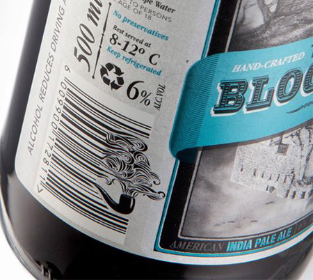此国外饮料包装设计,其条码的创意在于能表现行业特征。设计师通过把部分条码加粗之后,并在加粗后的线条上融入了手与酒瓶的设计,众多的手集结在一起,就有了Party的气氛,可以看出它是KTV类聚会饮料标签设计。