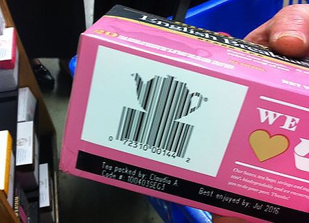 此国外纸质茶包装设计,其条码的创意在于条码上面多个“条形茶壶“。