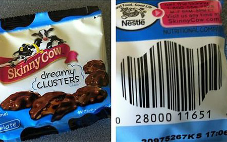 Skinny cow品牌创意标签设计,如果的那看其条码的形状是不容易辨别的,在看到正面的产品模样之后,一切就显得简单清晰多了。其条码的设计灵感正是源于对产品的“描述”。