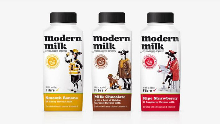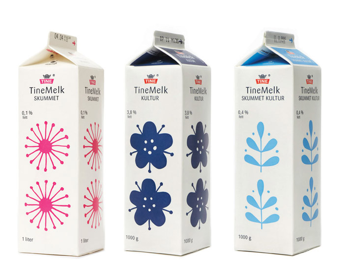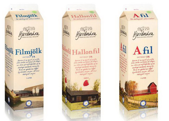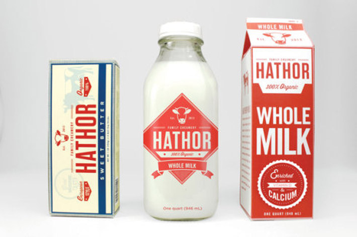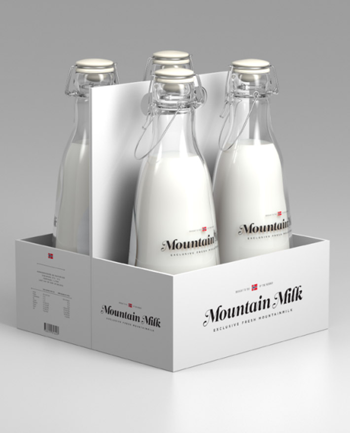 三种不同材质不同设计的HATHOR品牌牛奶包装设计