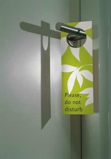 请勿打扰的挂牌,以草绿色作为背景色,搭配上白色的树叶,乍一看还以为是镂空的,非常具有立体感的设计,给人一种优雅宁静舒适的感觉。