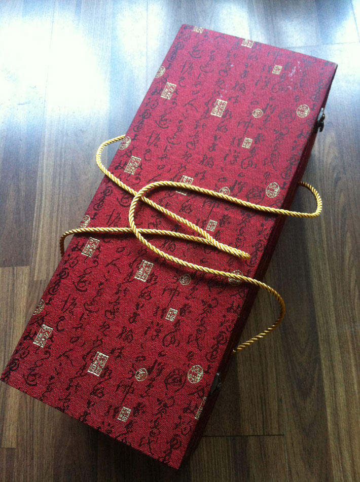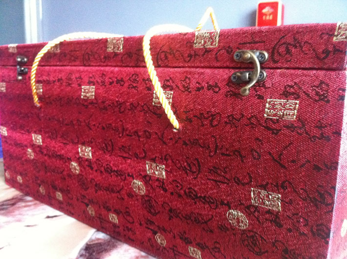 顶尖细致红色锦丝包装盒,符合送礼的体面包装细节展示