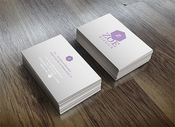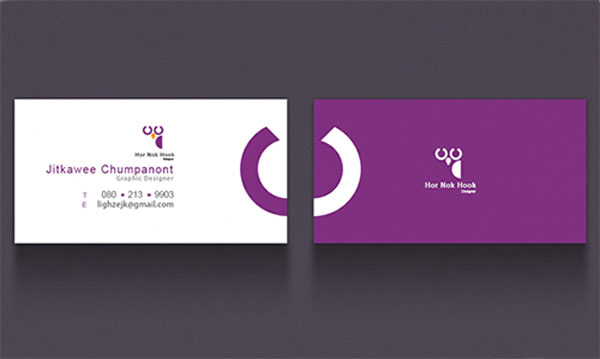 这个设计显示了一个完整的紫色与logo在白色背景,背面的的背景是白色和正面的紫色logo相交。