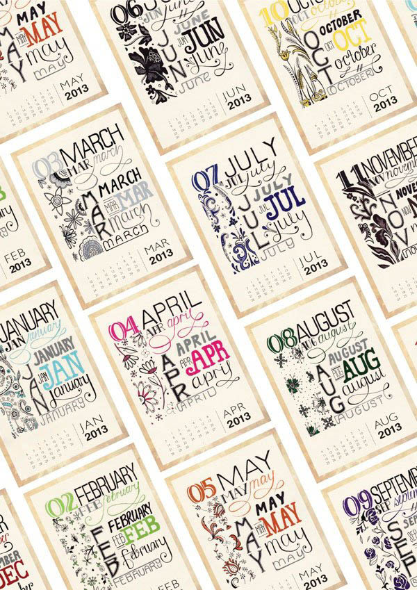 众多优秀日历设计字体设计