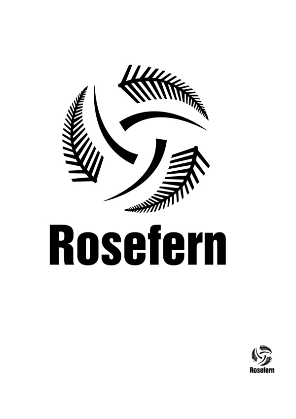 Rosefern黑白咖啡标志设计,整体由三片相同的叶子共同组合成一个圆,与他们分别对应的三片叶梗随之呈现在圆内,整体形成了一幅流转的“生态图”,简洁生动,纯黑色的标志图形搭配黑色字体,给人一种庄重的赶脚,同事主题文字所采用的字体,方圆浑厚,进一步加深了这种印象。