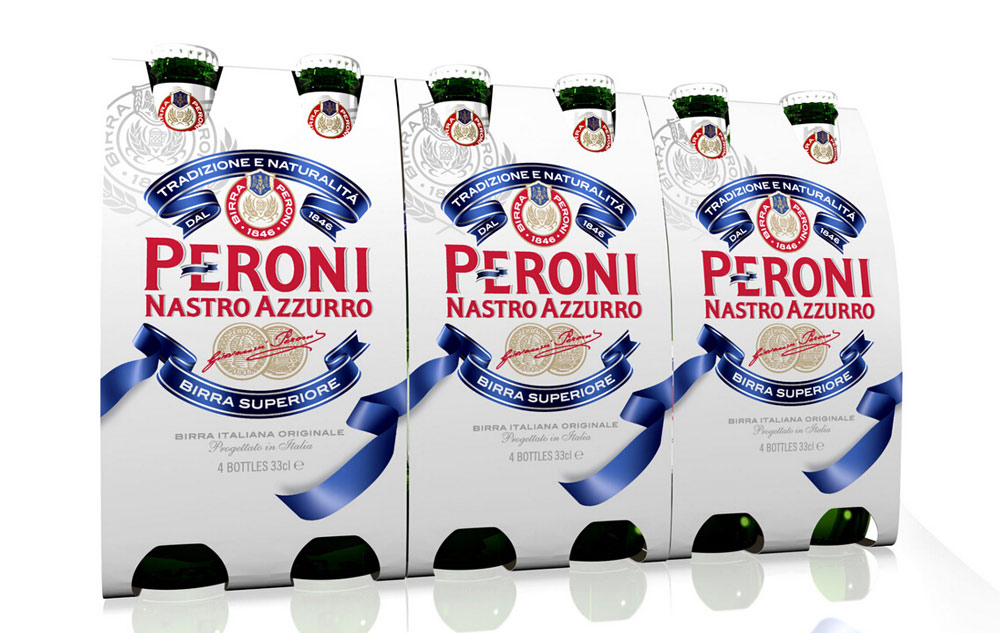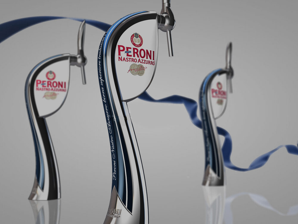 2、PERONI啤酒包装设计也借鉴了水龙头元素,但是却更具新意,远远望去更像是一只昂首挺胸的美丽孔雀。