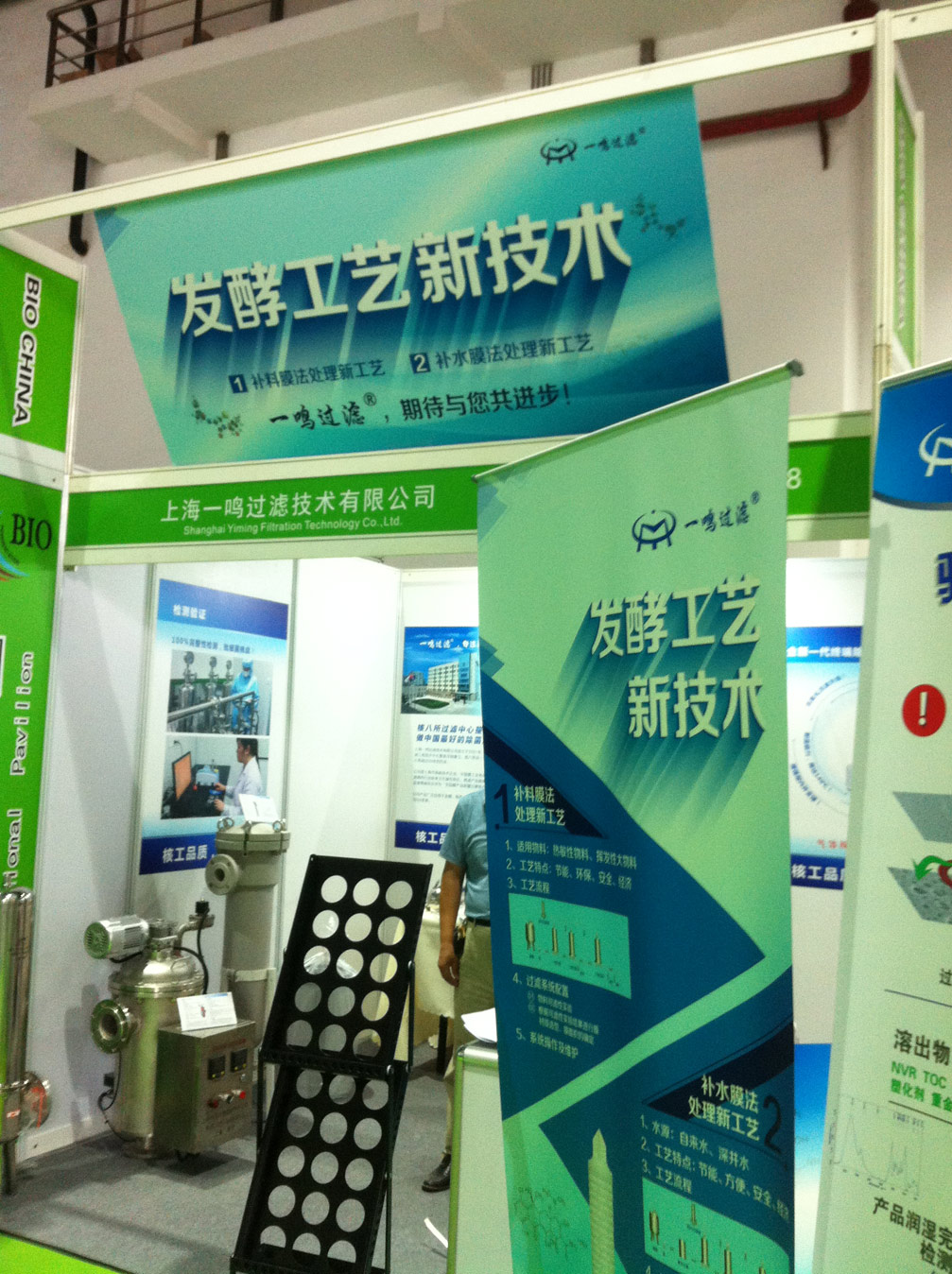 2015年度经济危机下的创新与企业紧密相连“上海一鸣过滤技术有限公司在发酵工艺上与独特的视角”补料膜法处理新工艺、补水膜法处理新工艺、滤芯掉粉,抗老化PTFE150度随笔用的技术来回馈用户;体现了一鸣过滤在研发、创新的能力与行业领先水平。上海虔城广告设计公司CEO亲临布展与搭建现场指导。