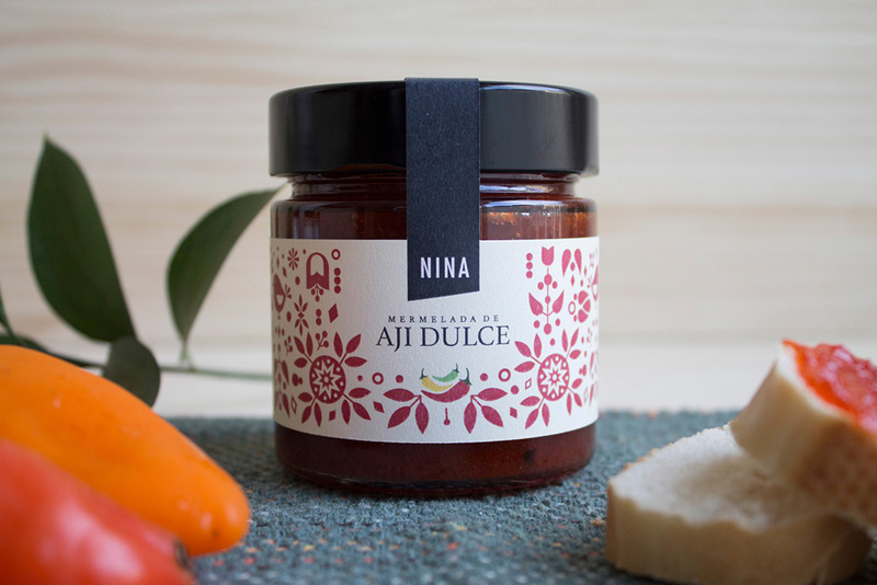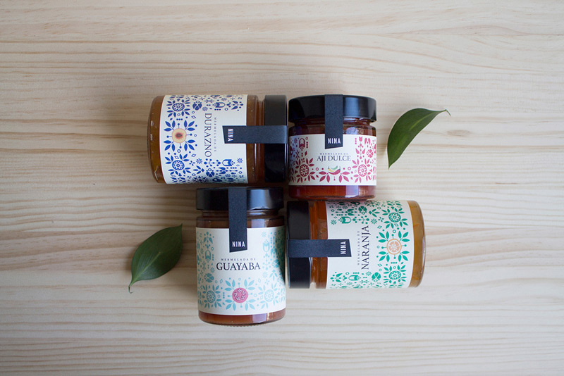如果说椭圆形身材的果酱包装设计你不感冒,那么来试试NINA果酱包装设计吧。此款果酱包装标签设计将不同的水果元素融合到装饰着花朵植物的图案中,并选用了不同的色彩来表现,让每种果酱包装在保持整体风格统一的同时,又具有自身独特的气质。每一种果酱包装都是一件美丽的艺术品,消费者可以通过包装一眼就能看出这是什么口味的果酱,视觉识别度较高。