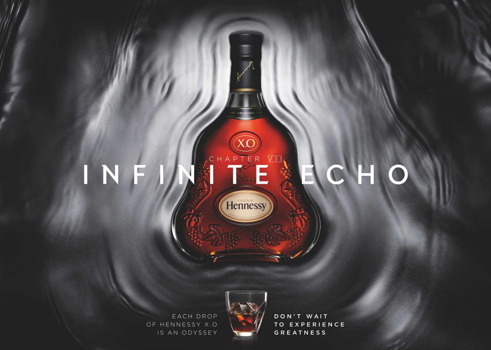 轩尼诗XO酒宣传广告设计,在策划主题上,设计师用了“ Infinite echo、Rising heat、Spicy edge、 Wood crunches、Chocolate lull、Flowing flame”这五个词来形容酒的味道,并将它们打造成不同的场景加以表现。有热烈的、甘甜的、丝滑的、回味的等,品位后不同阶段的回味都是一段美妙的旅程。在广告的渲染效果上,设计师也尽量带入轩尼诗酒的品位层次,以媲美电影特效的画面处理手法处理每张广告,力求将广告强烈的代入感给表现出来,如果你是第一次接触轩尼诗,那么你会被它迷人的外表所吸引。如果你是它的粉丝,那么你会为它疯狂着迷。