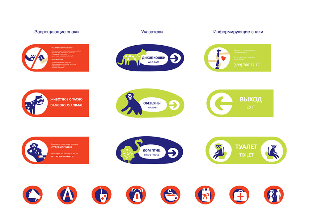 莫斯科动物园手绘插画风格形象VI及空间导视、WEB端应用设计