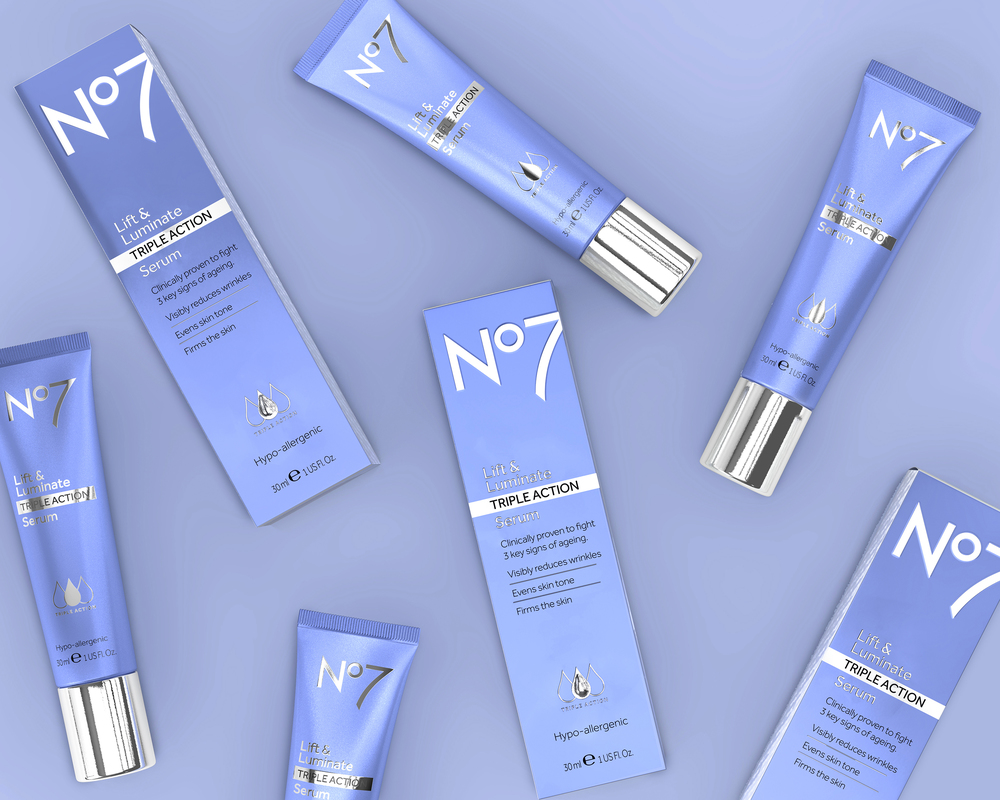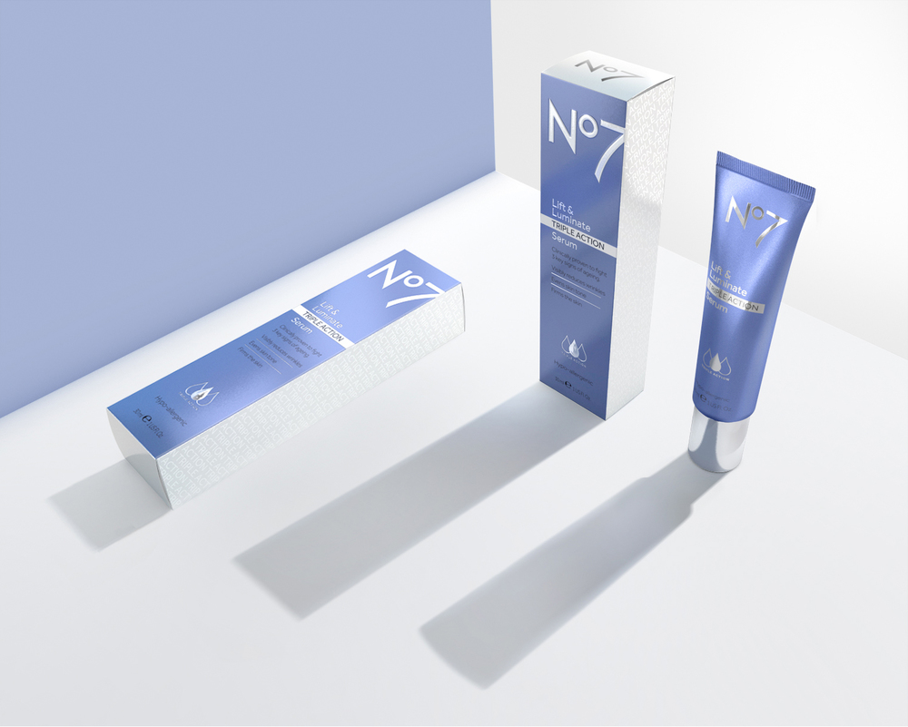 再次,是印刷的工艺选取,不同的印刷工艺需要搭配相对应的印刷材料载体。才能达到合理、合适的完美效果。NO7驻颜修复抗衰老护肤品包装设计在产品定位与印刷工艺的选取上就很好的对应了产品的受众人群特点。中高档消费人群,这类人群具有一定水平的购买能力,追求生活品质,有自身成熟的审美理念,消费不再是冲动性而是更加的偏于理性,适合的才是最好的。