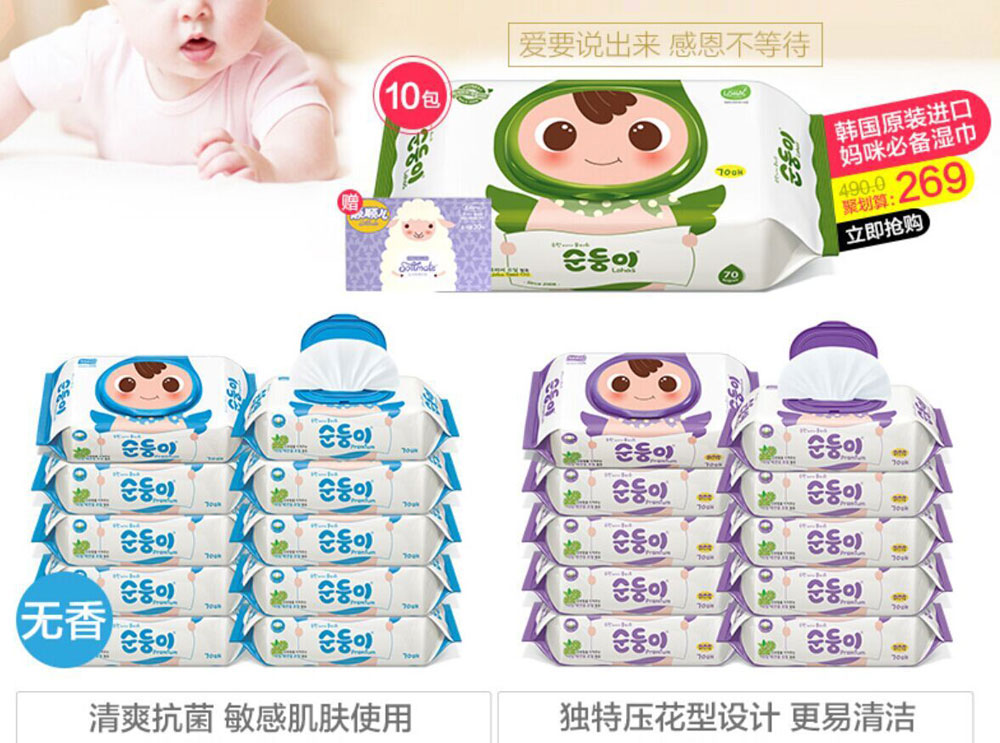 1、宝宝湿巾(LOGO设计图一个,婴儿护肤湿巾80片装,婴儿手口湿巾80片装)