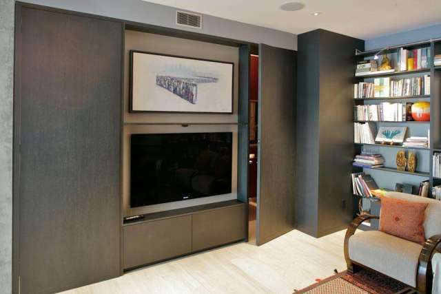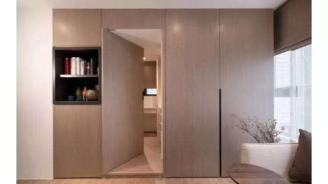 第一则是私密空间的营造。隐形门是直接与墙面融为一体,这样可以在门后的空间放置贵重的物品。也可以将门后的空间创造特定的氛围,比如为书房开辟出一个休息室,为卧室的衣帽开辟出一个专门的空间。